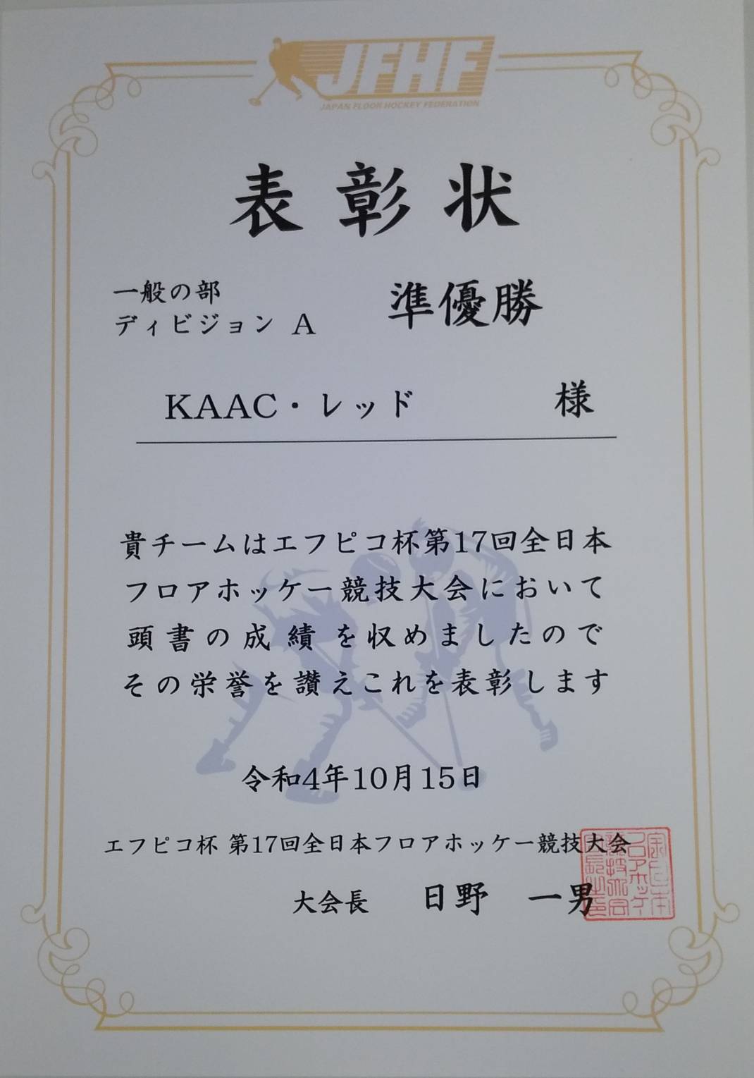 KAACフロアホッケークラブから2チーム出場。