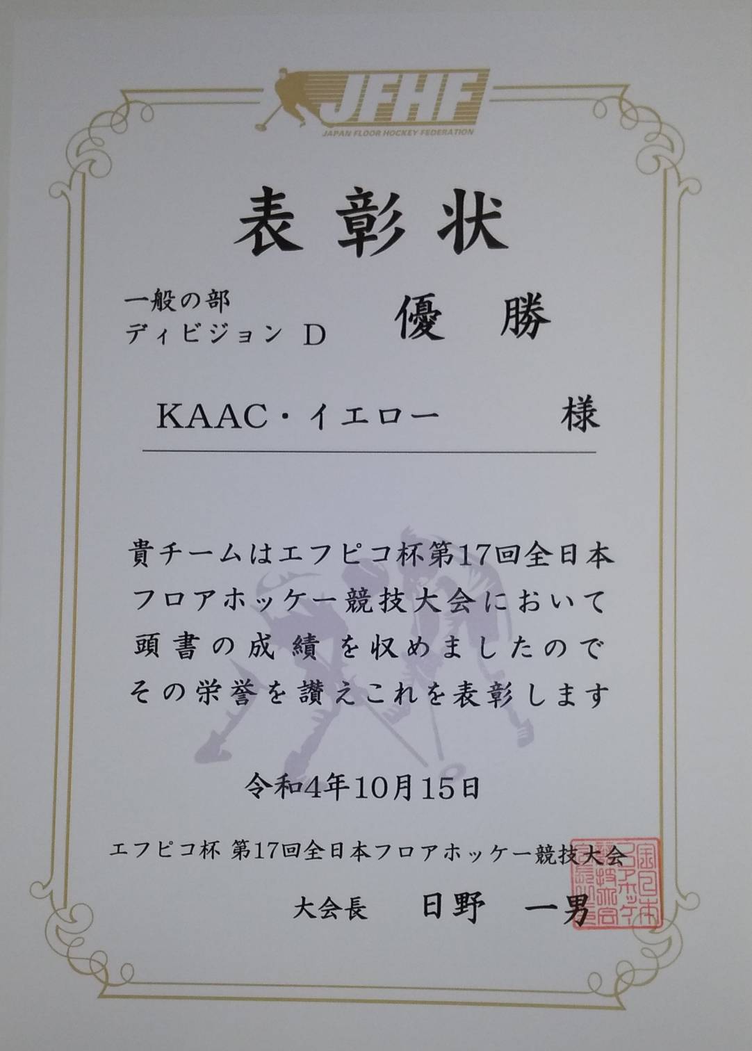 日本フロアホッケー連盟、関係者の皆様、エフピコからボランティアでお手伝いしてくださった皆様、本当にありがとうございました。