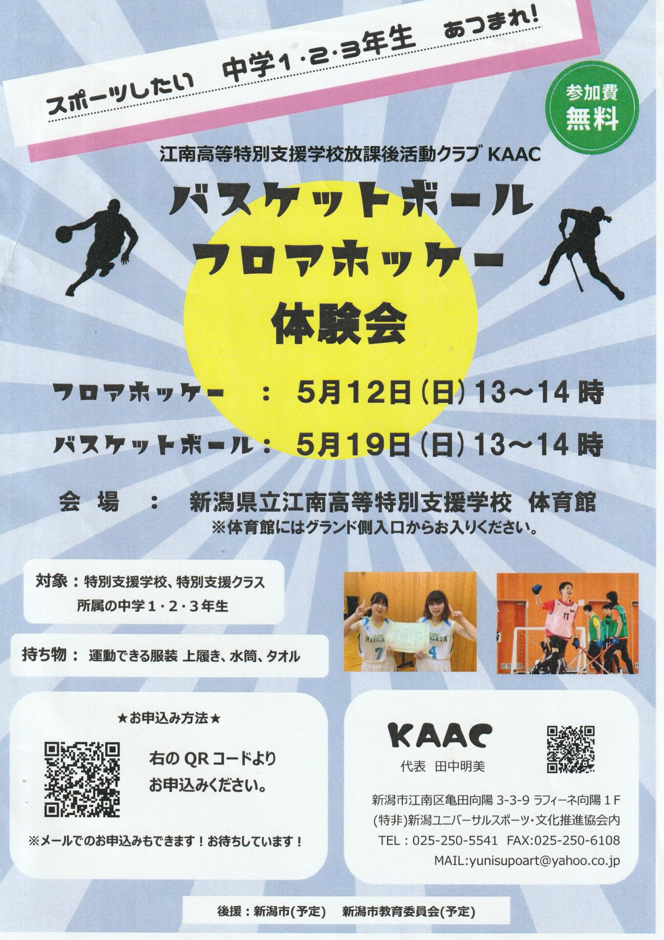 バスケットボールとフロアホッケーの体験会を開催します。